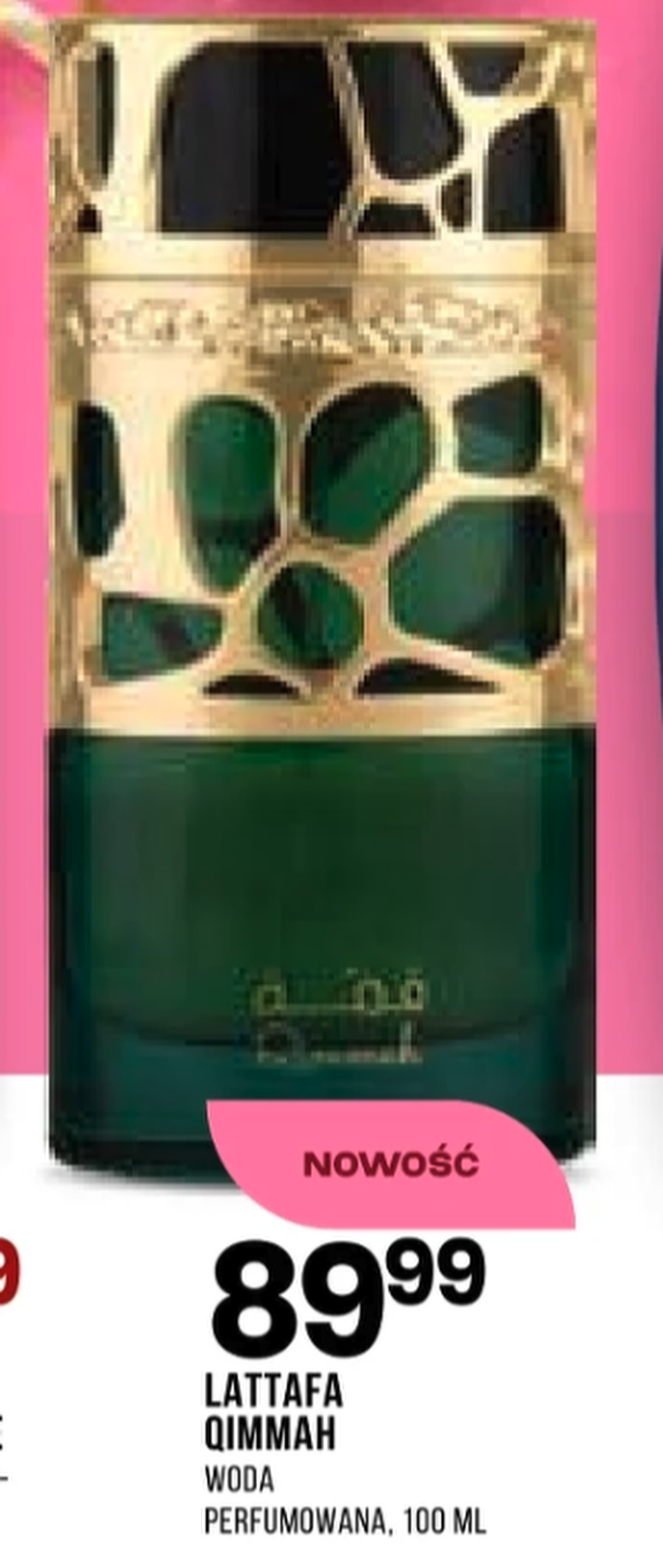 Lattafa Qimmah – 89,99 zł (normalnie 89,99 zł to cena regularna, ale w zestawie z innymi promocjami jest hitem). Orientalny szyk w eleganckiej butelce – można wręczyć i nie będzie wstydu.