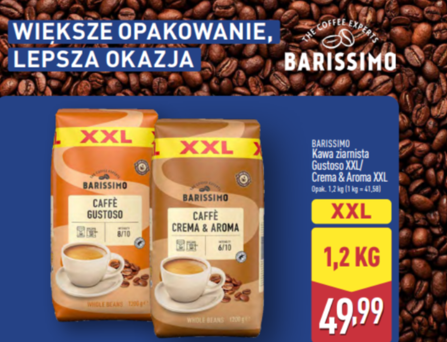 O co tyle hałasu? Od czwartku, 2 października, aż do soboty, można dostać kawę ziarnistą Barissimo w absurdalnie wielkiej paczce XXL (1,2 kg) za 49,99 zł.