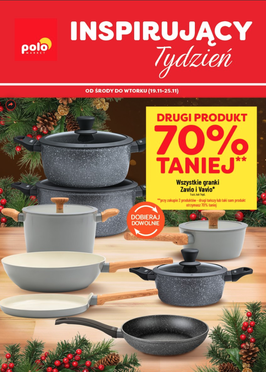 W promocji biorą udział naczynia marek Zavio i Vavio, czyli marek własnych Polomarketu. Na pierwszy rzut oka brzmi to jak typowa „marketowa półka”, ale z doświadczenia wiem, że sprzęty tego typu potrafią zaskoczyć — czasem pozytywnie, czasem mniej. Tutaj zestaw jest dość szeroki: aluminiowe patelnie i garnki z powłokami nieprzywierającymi, modele z serii Stone Design i Tokyo, a także warianty ze stali nierdzewnej z linii Prestigio.