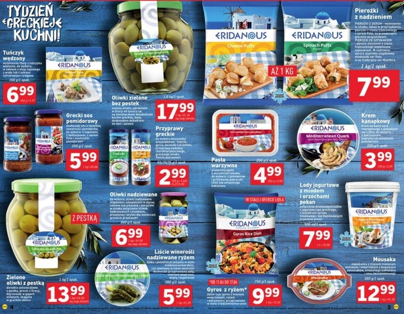 Lidl w swojej najnowszej gazetce promocyjnej prezentuje szeroki wybór greckich przekąsek, które na pewno nas zachwycą oraz dodatków, które wzbogacą smak przyrządzonych potraw. A wszystko to z zachowaniem najwyższej jakości produktów, a także pamiętając o tym, by było zdrowo i smacznie. Na pewno warto skusić się na pierożki z serem feta lub ze szpinakiem za 7,99 zł. Lidl zaskakuje niskimi cenami tradycyjnych greckich przekąsek, takich jak: baton z nadzieniem migdałowym, baton sezamowy z miodem, baton z orzechami laskowymi, orzechy ziemne w cieście tzatziki czy ziarna słonecznika w czekoladzie.