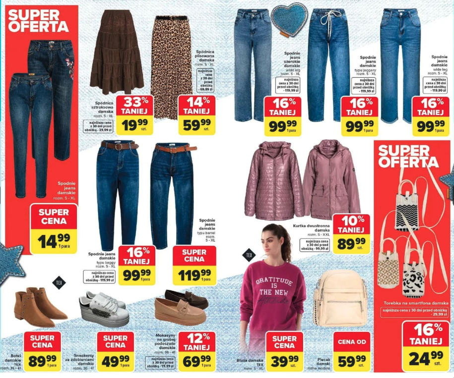Oferta Carrefour obowiązuje od 16 do 28 lutego 2026. Jak zawsze — konkretne produkty zależą od dostępności w danym sklepie. Ale jedno jest pewne: za mniej niż 200 zł możesz odświeżyć pół szafy. I nie mówię tego jako reklamę — mówię to jako ktoś, kto właśnie przymierza się do tych jeansów za piętnastkę.