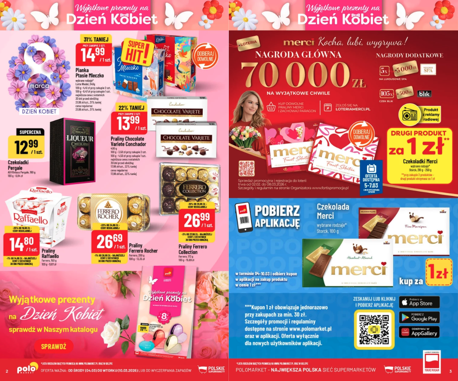 Tak. Posiadacze aplikacji POLOmarket mogą odebrać kupon na zakup czekolady Merci za 1 zł w terminie 4–10 marca. Oferta aplikacyjna dotyczy wyłącznie nowych użytkowników. Przy zakupach za min. 30 zł kupon jest jednorazowy.