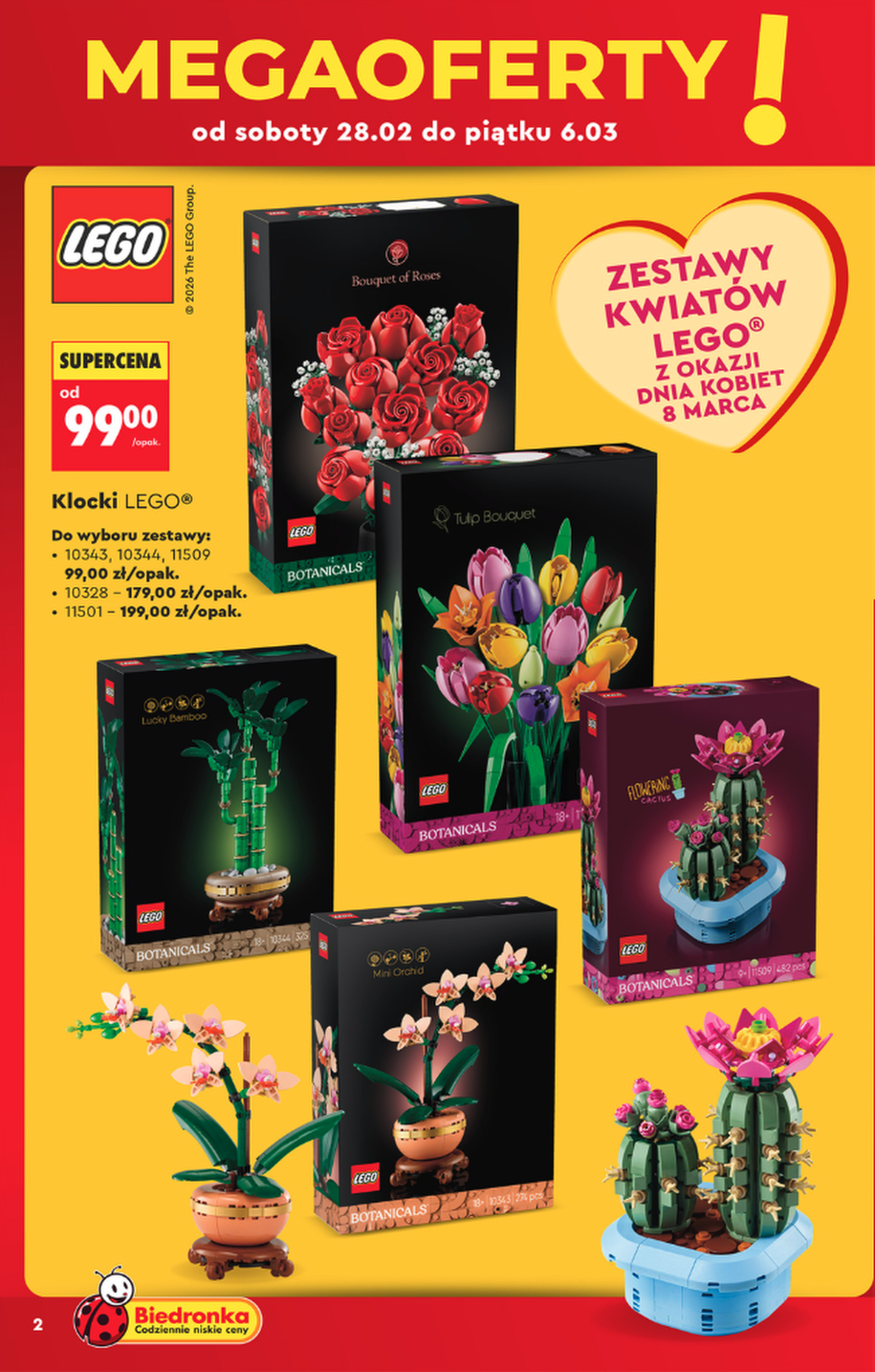 Od soboty 28 lutego w Biedronce pojawia się coś, na co czekało sporo fanów klockowych kwiatów. Sieć wprowadza do sprzedaży zestawy z serii LEGO Botanicals — i robi to z konkretną superceną w aktualnej gazetce Biedronki, bo już od 99 zł za opakowanie.
