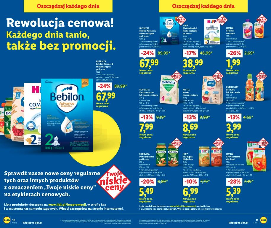 Tak. Bebilon Advance 2 (1000 g) kosztuje teraz 67,99 zł zamiast 89,99 zł. W ofercie są też kaszki BoboVita, Nestlé i zupy HiPP z nową ceną regularną.