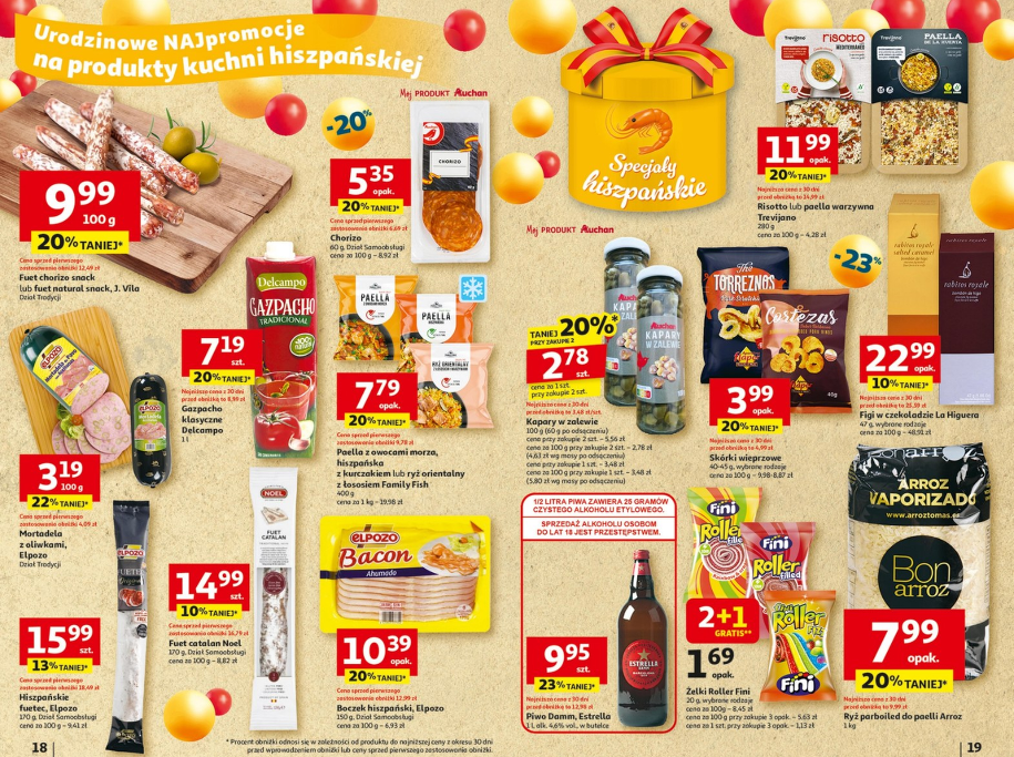 Dla spragnionych – piwo Estrella Damm za 9,95 zł oraz gazpacho klasyczne Delcampo za 7,19 zł to idealne rozwiązanie na upał. Jest też coś na słodko: Żelki Roller Fini w promocji 2+1 gratis oraz hiszpańskie risotto (paella warzywna lub ryż arborio) za 11,99 zł.