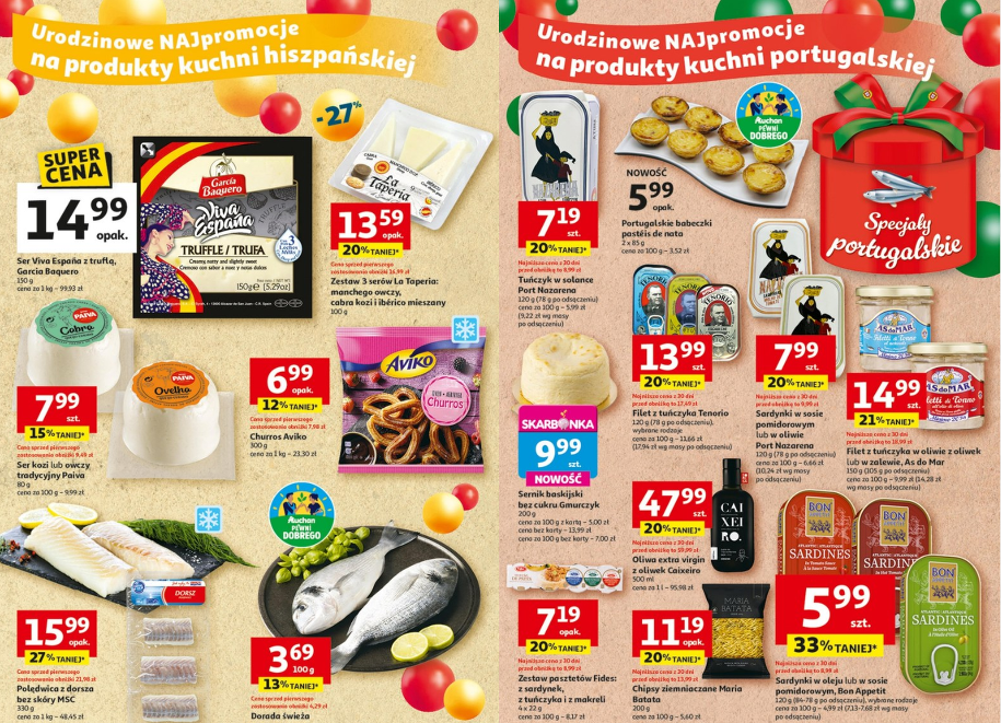 Nie zabrakło też wyjątkowych smaków Portugalii – babeczki pasteis de nata za 5,99 zł rozczulą każdego łasucha. Dla fanów owczego mleka – ser Paiva (kozi lub owczy) za 7,99 zł. A na koniec coś luksusowego: oliwa z oliwek extra virgin Caixeiro za 47,99 zł. Taka promocja nie zdarza się codziennie!