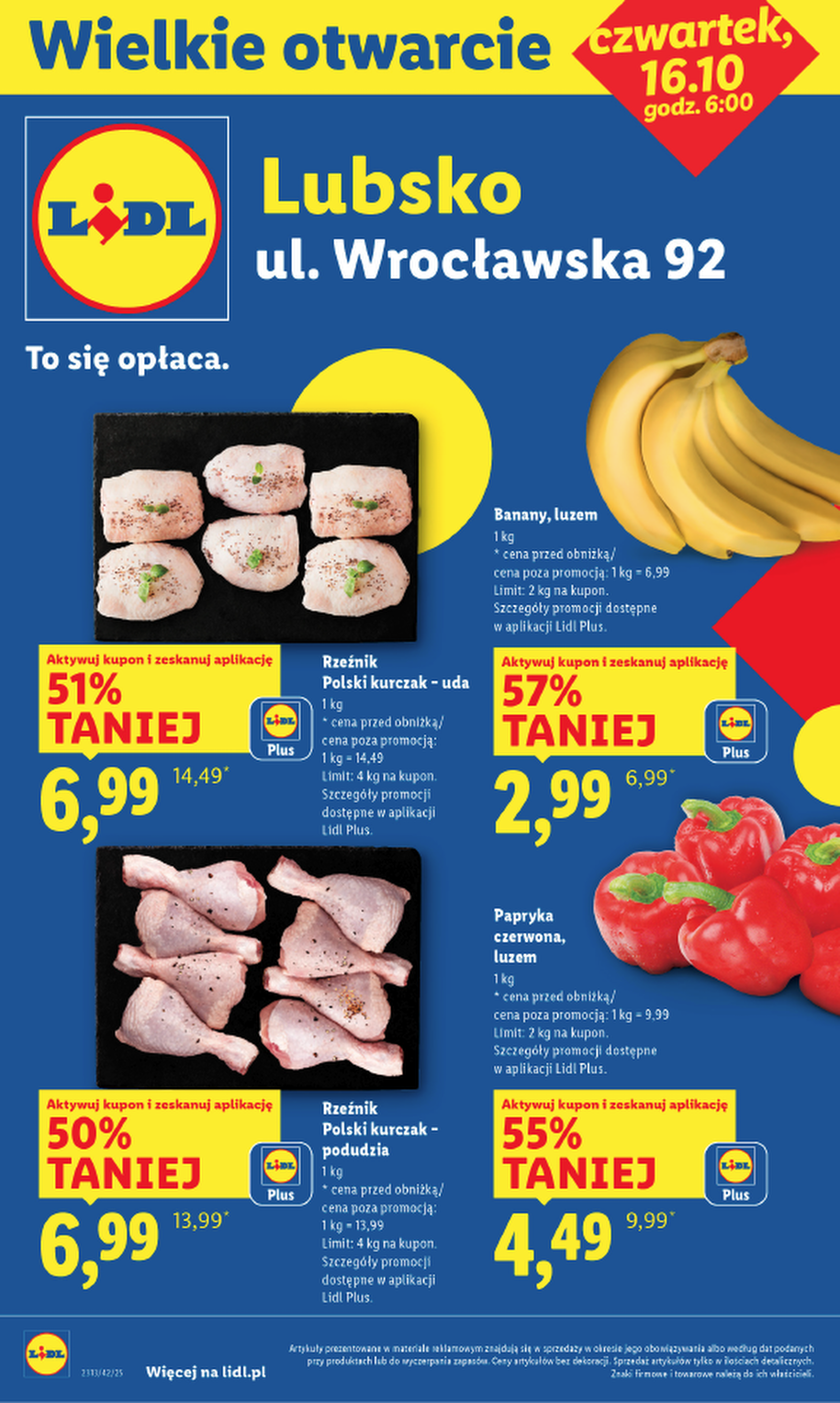 Tak, nowy sklep w Lubsku będzie oferował pełen asortyment, w tym wszystkie produkty z aktualnych ofert tematycznych, które pojawiają się w gazetkach promocyjnych. Dostępność poszczególnych artykułów może być jednak ograniczona do wyczerpania zapasów, więc warto się spieszyć.
