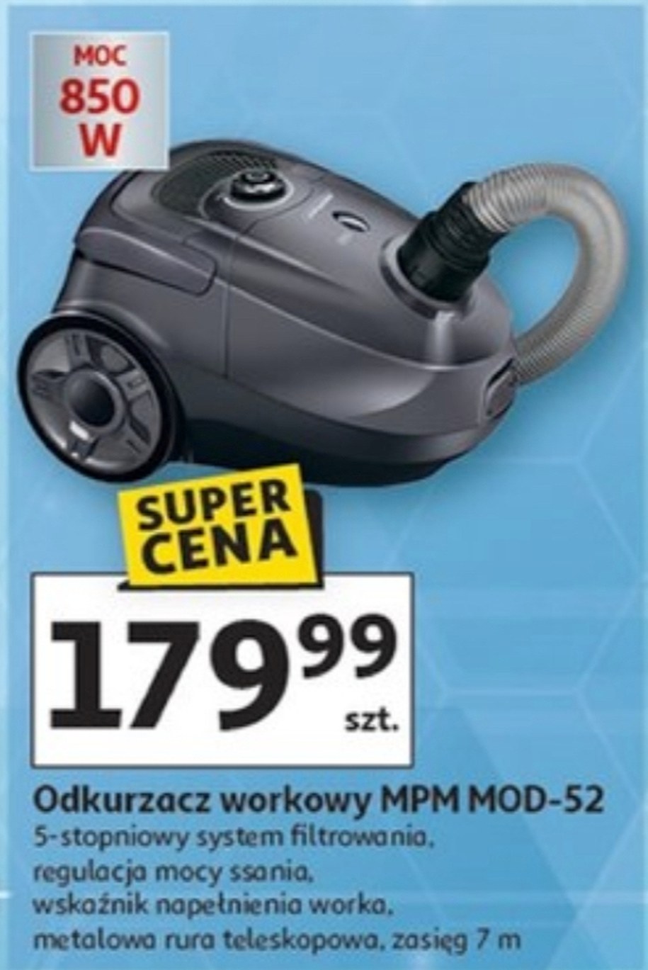 Jeśli stare urządzenie ledwo zipie, a ty marzysz o porządnym odkurzaniu bez wysiłku, ta oferta może cię zainteresować. W gazetce Auchan pojawił się odkurzacz workowy MPM MOD-52 o mocy 850 W. Wyposażony w 5-stopniowy system filtrowania, regulację mocy ssania i metalową rurę teleskopową, staje się potężnym sojusznikiem w walce z kurzem. A jego cena? Tylko 179,99 zł. To naprawdę solidna propozycja w tym budżecie.