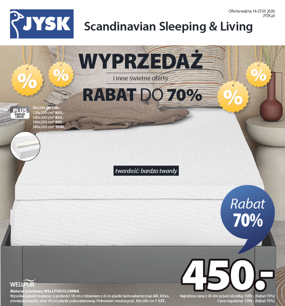Materac WELLPUR GLOMMA za 450 zł - hit wyprzedaży JYSK