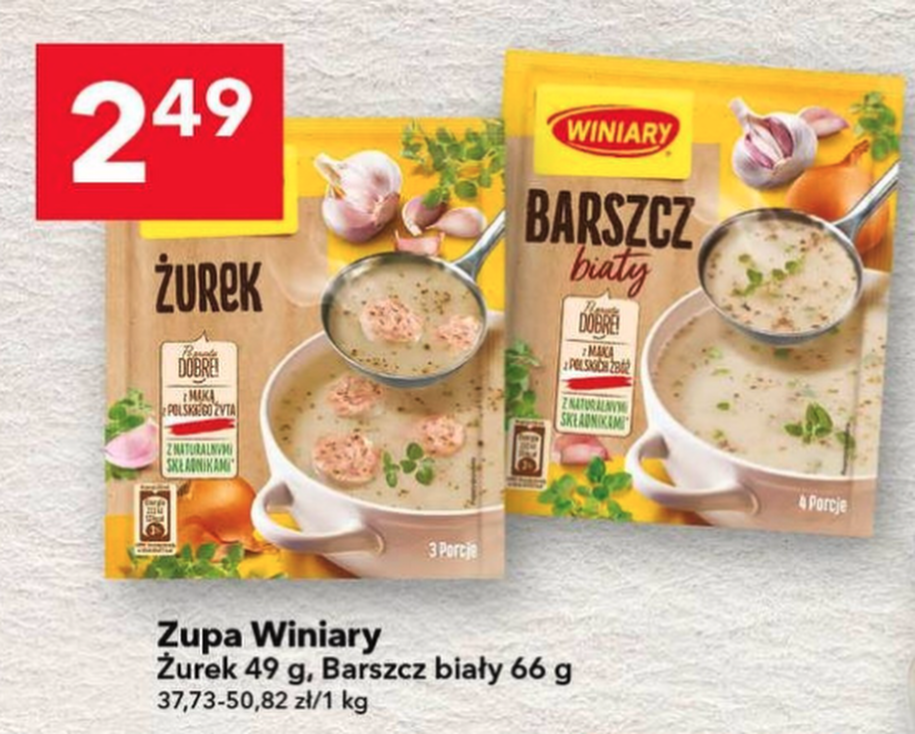 - Zupa Winiary Barszcz biały (66 g) — 2,49 zł — baza na 4 porcje barszczu